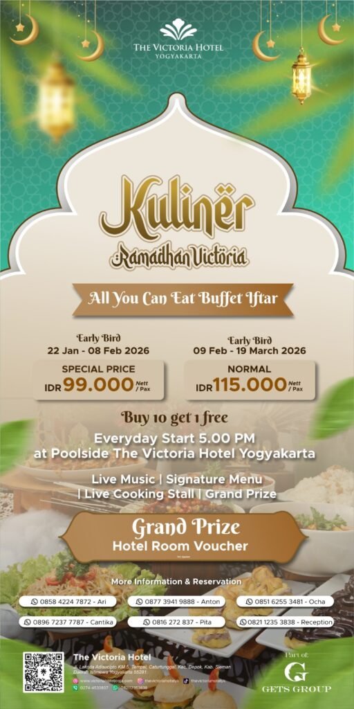 Bulan Ramadhan kali ini,The Victoria Hotel Yogyakarta menghadirkan pengalaman Iftar Istimewa dengan Sajian Nusantara & Internasional. Pada 2 Febuari 2026,untuk menyambut Bulan Puasa yang sebentar lagi tiba,The Victoria Hotel mengadakan event Iftar Showcase untuk menampilkan sajian andalan yang akan hadir pada momen Kuliner Ramadhan Victoria mulai tanggal 18 Febuari 2026 hingga periode 20 Maret 2026
